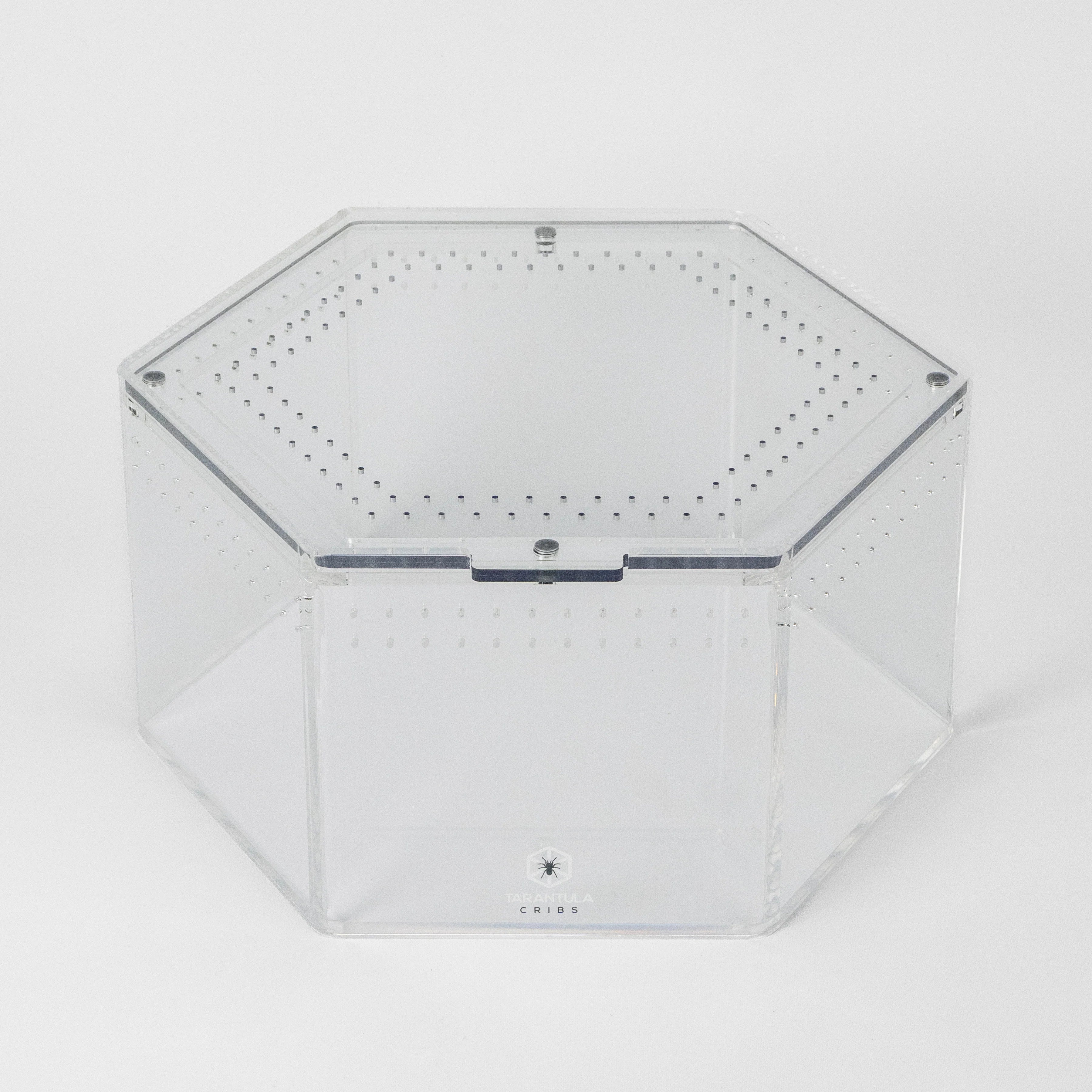 Elevate your arachnid’s living space with Tarantula Cribs' Hexagon enclosure – where sleek design meets ample space. Crafted from premium acrylic, this stylish hexagon-shaped habitat combines modern aesthetics with practical functionality, offering the perfect home for your critters.